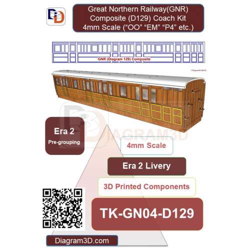 This kit represents a 45 foot composite coach built to diagram 129 (D129). This vehicle combined an open third class area and separate first class accommodation.