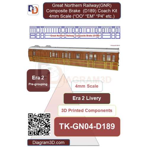 This kit represents a Great Northern Railway Composite Coach (Diagram 189, D189).
